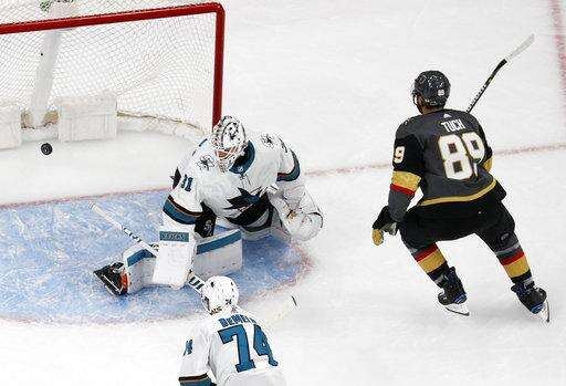 NOTES: Vegas' four goals in the first period marked the fifth tim1e this season it netted four in one period. ... It was the third time this season the Sharks allowed four goals in a period. ... No. 1 UFC featherweight contender Brian Ortega, who fill fight champion Max Holloway for the title on July 7, was in attendance.