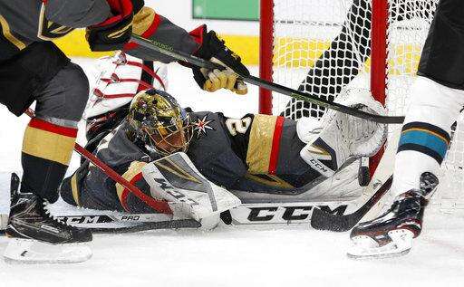 Fleury's 3rd shutout of playoffs helps Vegas beat Sharks 7-0