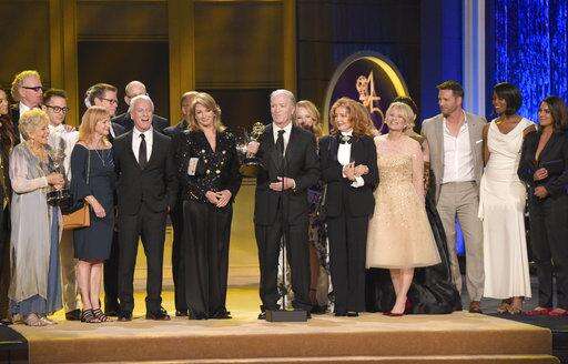 Ken Corday and the cast and crew of "Days of Our Lives" accept the award for outstanding drama series at the 45th annual Daytime Emmy Awards at the Pasadena Civic Center on Sunday, April 29, 2018, in Pasadena, Calif. (Photo by Richard Shotwell/Invision/AP)