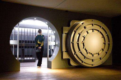 A visitor enters The Vault during the grand opening of the DIVA diamond and silver museum in Antwerp, Belgium on Friday, May 4, 2018. The museum uses interactive panels and the display of ornate objects to tell the story of Antwerp diamonds and the Flemish art of silversmithing and jewelry design. (AP Photo/Virginia Mayo)