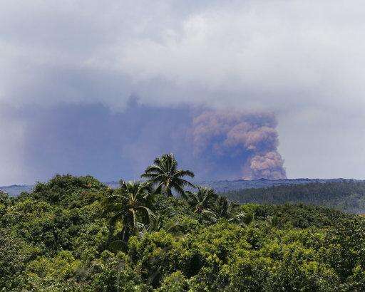 This Friday, May 4, 2018, aerial image released by the U.S. Geological Survey, at 12:46 p.m. HST, a column of robust, reddish-brown ash plume occurred after a magnitude 6.9 South Flank of Kīlauea earthquake shook the Big Island of Hawaii, Hawaii. The Kilauea volcano sent more lava into Hawaii communities Friday, a day after forcing more than 1,500 people to flee from their mountainside homes, and authorities detected high levels of sulfur gas that could threaten the elderly and people with breathing problems. (U.S. Geological Survey via AP) The Associated Press
