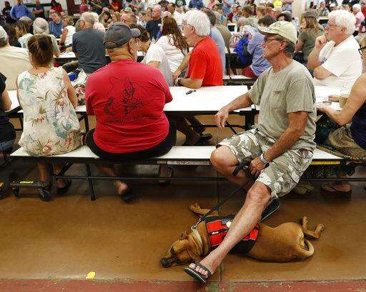 Residents from the lava affected areas of the Big Island hold a prayer before the start of a community meeting with local authorities at Pahoa High School, Friday, May 4, 2018, in Pahoa, Hawaii. (AP Photo/Marco Garcia) The Associated Press