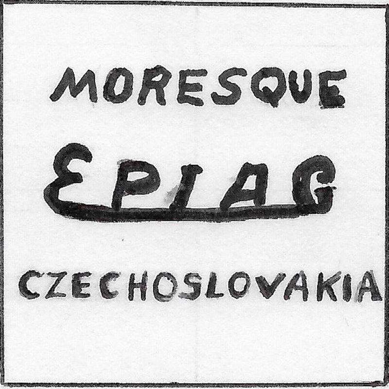 A. Porcelain that is marked "Czechoslovakia" was made from 1920 to 1945. "Epiag" is an acronym that represents Erste Bohemische Porzellan A.G. Translated that means First Bohemian Porcelain Industry. "Epiag" was an association of porcelain factories that was organized by the Austrian government in 1918. "Moresque" is the name of the pattern that was inspired by Moorish designs.