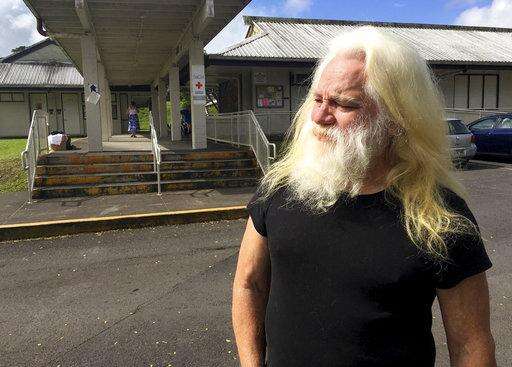 Steve Clapper, who lives in the Leilani Estates subdivision where the first lava erupted right behind his home, talks to a reporter at a shelter in Pahoa, Hawaii on Sunday, May 6, 2018. Officials on Hawaii's Big Island say what started out as a small spattering of lava from the ground Saturday night only took minutes to become cascading fountains. U.S. Geological Survey volcanologist Wendy Stovall says lava fountains spewed as high as 230 feet (70 meters) into the air only 15 minutes after the initial eruption from a the latest of several new fissures in the area. (AP Photo/Haven Daley)