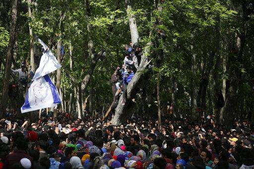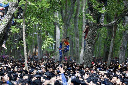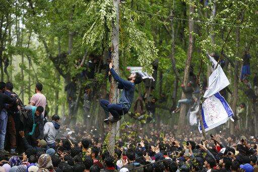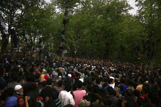 Anti-India protests and clashes continued in the area and also spread to some other towns and villages of southern Kashmir. Later Sunday, tens of thousands of people gathered for the funeral of the slain rebel leader, including at least a dozen armed militants who fired their guns in air to salute their fallen comrade.