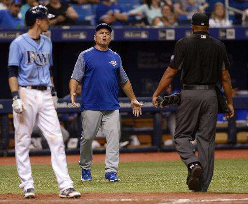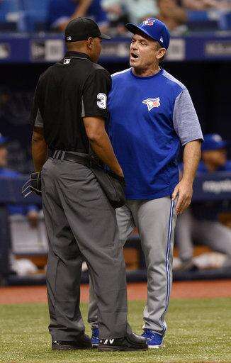 Toronto manager John Gibbons was ejected for the third time in five days after Ryan Tepera was called for a balk by plate umpire Jeremie Rehak in the eighth.