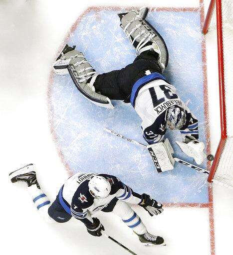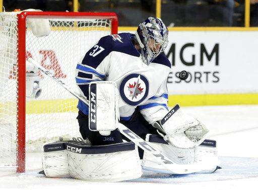 NASHVILLE, Tenn. (AP) - Jets goalie Connor Hellebuyck got to watch his teammates put on a goal-scoring show in Music City.