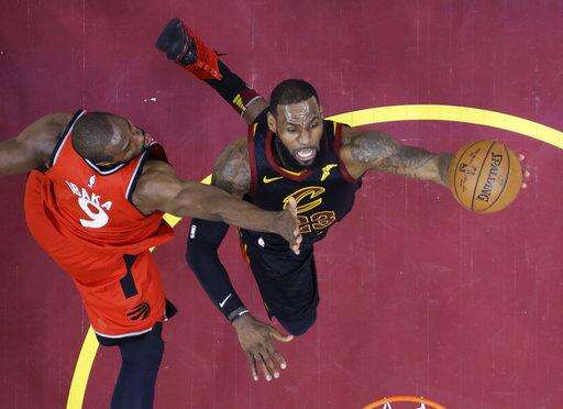 James banked in a running one-hander at the buzzer, giving the Cleveland Cavaliers a 105-103 win over Toronto on Saturday night in Game 3 and shoving the Raptors to the edge of their most devastating playoff exit.