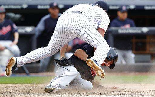 Tyler Naquin's RBI single and Francisco Lindor's RBI double keyed Cleveland's four-run burst in the eighth. The Indians also scored on Sanchez's sixth passed ball this season and Jason Kipnis' sacrifice fly.