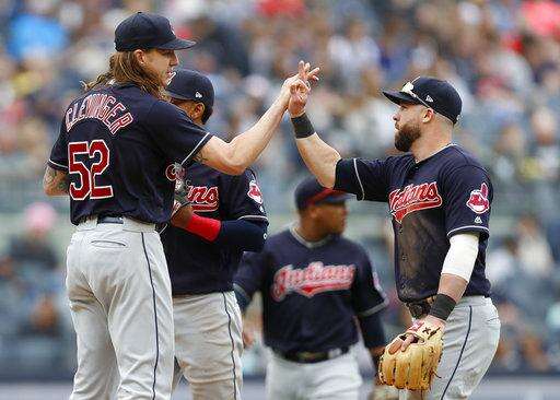Indians: LHP Andrew Miller (strained left hamstring) plans to throw off a mound Tuesday, perhaps with hitters standing in, but won't be reinstated from the disabled list until Friday at the earliest. ... With banged-up center fielder Bradley Zimmer out of the lineup, Cleveland recalled OF Greg Allen from Triple-A Columbus. Allen played center and batted ninth. Zimmer exited Saturday's loss after crashing hard into the fence trying to catch Austin Romine's double. He has a bruised left shoulder and hip but no concussion, Francona said. After a day off Monday, the team hopes Zimmer can return to the lineup Tuesday night in Milwaukee.