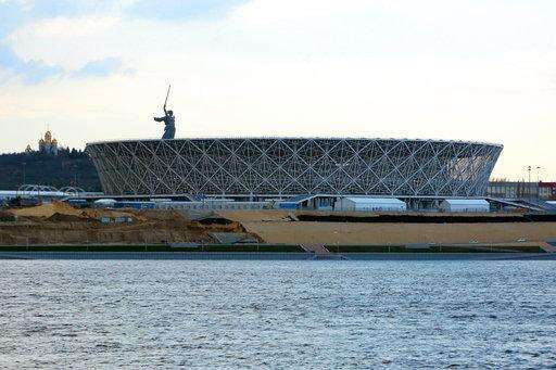 In this photo taken on Friday, April 13, 2018, a view on the new the World Cup stadium in Volgograd, Russia. (AP Photo/Dmitriy Rogulin) The Associated Press