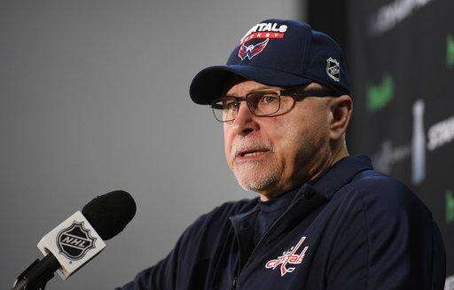 Washington Capitals' head coach Barry Trotz talks to the media at an NHL hockey practice, Thursday, May 10, 2018, in Arlington, Va. (AP Photo/Nick Wass) The Associated Press
