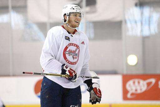 Washington Capitals left wing Andre Burakovsky smiles at an NHL hockey practice, Thursday, May 10, 2018, in Arlington, Va. (AP Photo/Nick Wass) The Associated Press