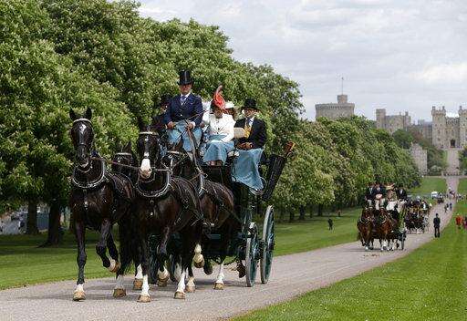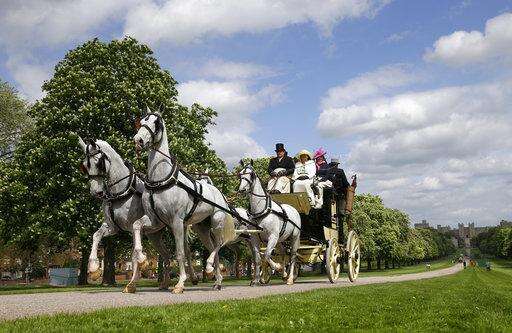 A horse-drawn carriage makes it's way down the Long Walk from Windsor Castle in Windsor, England, Friday, May 11, 2018. All roads seem to lead to Windsor Castle, a magnificent fortress perched high on a hill topped by the royal standard when the queen is in residence. It is here - a favoured royal playground since William the Conqueror built the first structure here in 1070 - that the royal wedding of Prince Harry and Meghan Markle will take place. (AP Photo/Alastair Grant) The Associated Press