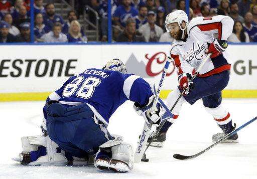 NOTES: Ovechkin has 17 points (nine goals, eight assists) in 13 playoff games. Kuznetsov had two assists, giving him nine this postseason. ... The teams are meeting in the playoffs for just the third time, first since 2011. Tampa Bay won both previous meetings, including a sweep in the Eastern Conference semifinals seven years ago. Stamkos and Hedman are the only players remaining on the Lightning roster from that series. ... The Capitals played without top center Nicklas Backstrom (hand), who's considered day-to-day. Winger Tom Wilson, meanwhile, returned from a three-game suspension for a hit on Pittsburgh's Zach Aston-Reese during in the second round. ... The Caps have outscored opponents 14-3 in the opening period this postseason. They've won seven of 10 games in which they've scored first.
