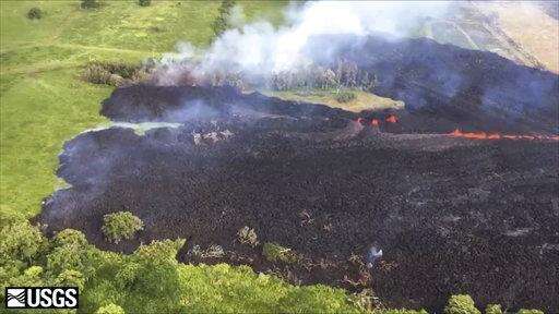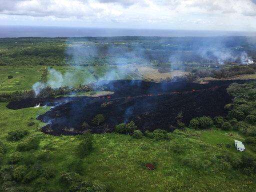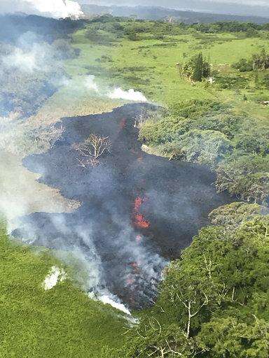 The U.S. Geological Survey's Hawaiian Volcano Observatory said the flow from the crack that emerged Sunday was heading on a path that would take it to the ocean, about 2 miles (3 kilometers) away. No homes or roads were threatened by the flow.