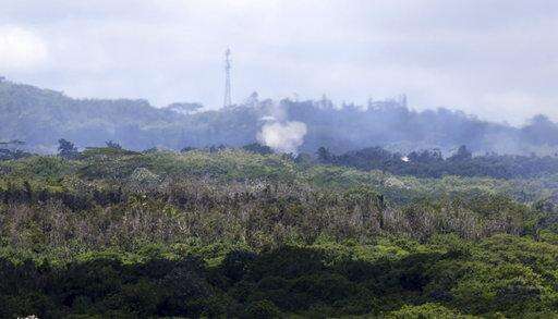 In this May 13, 2018 photo released by the U.S. Geological Survey, gases rise from a fissure near Pahoa, Hawaii. The new fissure in Hawaii's Puna District sent gases and lava exploding into the air, spurring officials to call for more evacuations as residents waited for a possible major eruption at Kilauea volcano's summit. (U.S. Geological Survey via AP) The Associated Press