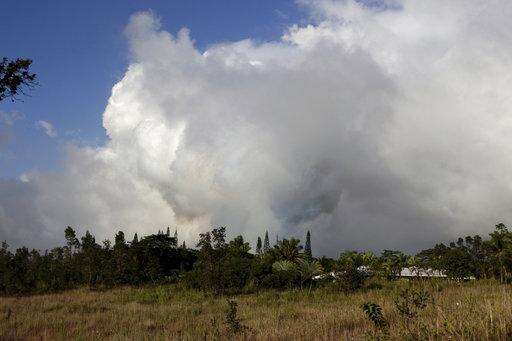 Volcanic gases and ash rise from recent lava fissures near Pahoa, Hawaii on Monday, May 14, 2018. People nixing vacations to Hawaii's Big island has cost the tourism industry millions of dollars as the top attraction, Kilauea volcano, keeps spewing lava. (AP Photo/Caleb Jones) The Associated Press