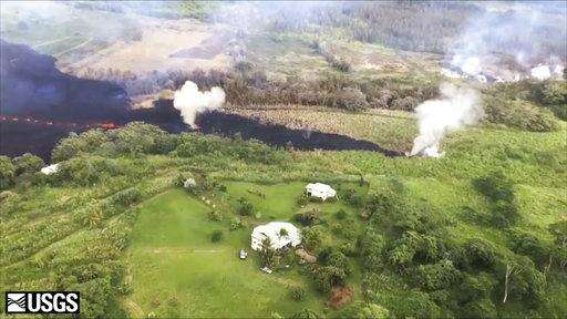 In this May 13, 2018 frame from video released by the U.S. Geological Survey, gases rise from a fissure near Pahoa, Hawaii. The new fissure sent gases and lava exploding into the air, spurring officials to call for more evacuations as residents waited for a possible major eruption at Kilauea volcano's summit. (U.S. Geological Survey via AP) The Associated Press
