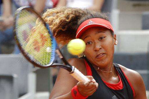 Japan's Naomi Osaka returns the ball to Belarus' Victoria Azarenka during a match at the Italian Open tennis tournament, in Rome, Monday, May, 14, 2018. (AP Photo/Alessandra Tarantino) The Associated Press