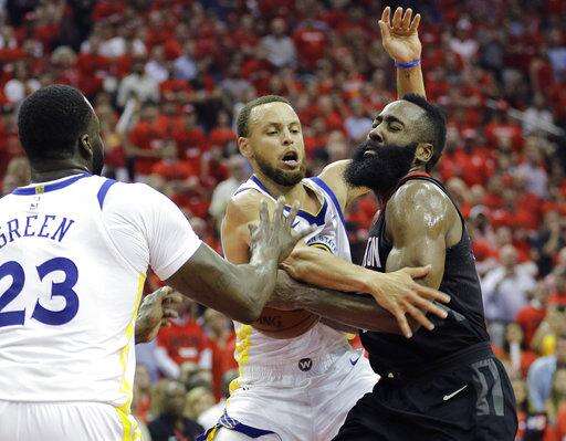 James Harden and Eric Gordon each score 27 points as the Rockets showed why they were the NBA's best team in the regular season with a 127-105 win over the Warriors to even the West finals at a game apiece.