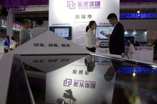 Attendees to the 21st China Beijing International High-tech Expo look at the booth of the state-controlled Tsinghua Unigroup project which has emerged as a national champion for Beijing's semiconductor ambitions in Beijing, China, Thursday, May 17, 2018. The Trump administration has threatened to impose tariffs on up to $150 billion in Chinese imports to punish Beijing over trade practices requiring American companies to hand over technology in exchange for access to the Chinese market. China has counterpunched by targeting $50 billion in U.S. products.(AP Photo/Ng Han Guan) The Associated Press