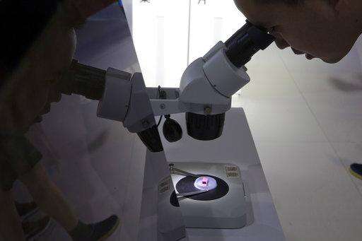 A visitor to the 21st China Beijing International High-tech Expo looks at a computer chip through the microscope displayed by the state-controlled Tsinghua Unigroup project which has emerged as a national champion for Beijing's semiconductor ambitions in Beijing, China, Thursday, May 17, 2018. The Trump administration has threatened to impose tariffs on up to $150 billion in Chinese imports to punish Beijing over trade practices requiring American companies to hand over technology in exchange for access to the Chinese market. China has counterpunched by targeting $50 billion in U.S. products.(AP Photo/Ng Han Guan) The Associated Press