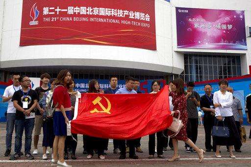 Visitors to the 21st China Beijing International High-tech Expo pose for photos with a Chinese flag in Beijing, China, Thursday, May 17, 2018. The Trump administration has threatened to impose tariffs on up to $150 billion in Chinese imports to punish Beijing over trade practices requiring American companies to hand over technology in exchange for access to the Chinese market. China has counterpunched by targeting $50 billion in U.S. products. (AP Photo/Ng Han Guan) The Associated Press