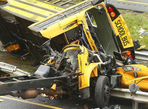 School bus ripped apart in dump truck crash, killing 2