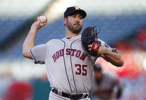 Houston Astros starting pitcher Justin Verlander throws to a Los Angeles Angels batter during the first inning of a baseball game Wednesday, May 16, 2018, in Anaheim, Calif. (AP Photo/Jae C. Hong) The Associated Press