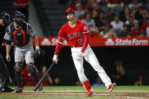 Los Angeles Angels' Shohei Ohtani, of Japan, reacts after striking out during the sixth inning of the team's baseball game against the Houston Astros on Wednesday, May 16, 2018, in Anaheim, Calif. (AP Photo/Jae C. Hong) The Associated Press