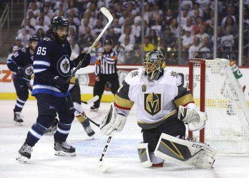The Jets pressed with under 4 minutes to go, with Fleury stopping captain Blake Wheeler on the doorstep, but it wasn't nearly enough as the Knights closed out their third straight series on the road.