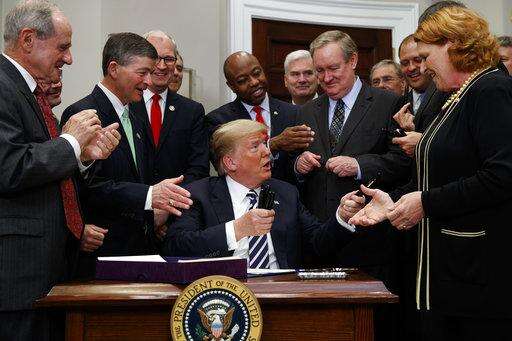 WASHINGTON (AP) - President Donald Trump on Thursday signed into law a measure that loosens key restraints for banks imposed after the 2008 financial crisis and Great Recession. Savoring the legislative triumph, he called it "the next step in America's unprecedented economic comeback."
