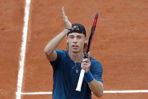 Canada's Denis Shapovalov celebrates winning against John Millman of Australia during their first round match of the French Open tennis tournament at the Roland Garros stadium in Paris, France, Tuesday, May 29, 2018. (AP Photo/Alessandra Tarantino) The Associated Press