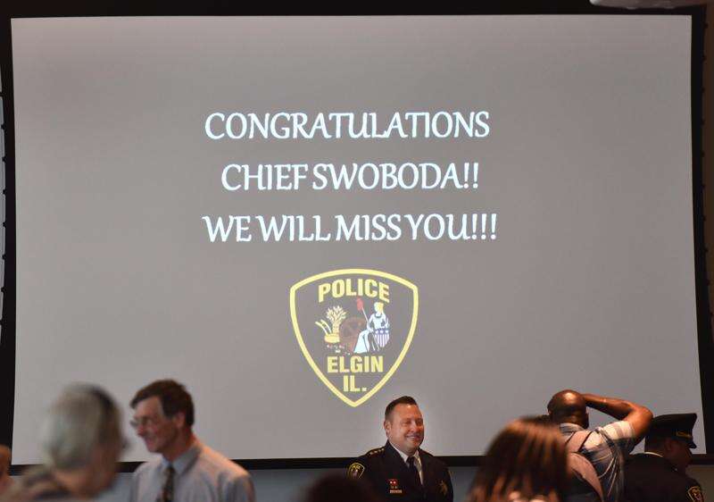 More than 300 people attended Elgin Police Chief Jeff Swoboda's retirement ceremony Thursday afternoon at the Centre of Elgin. Swoboda starts Monday as the new police chief in Fort Collins, Colorado.