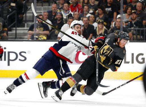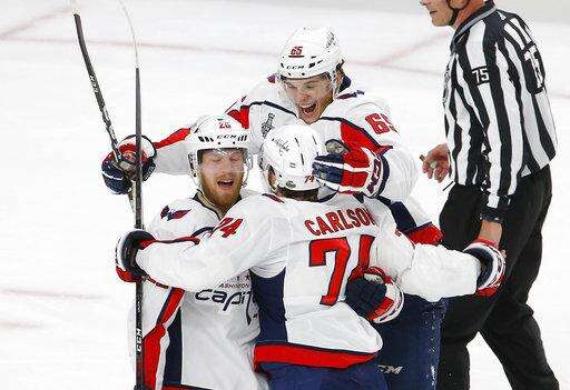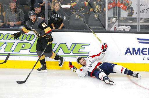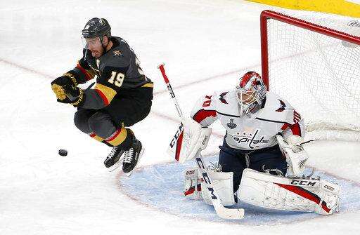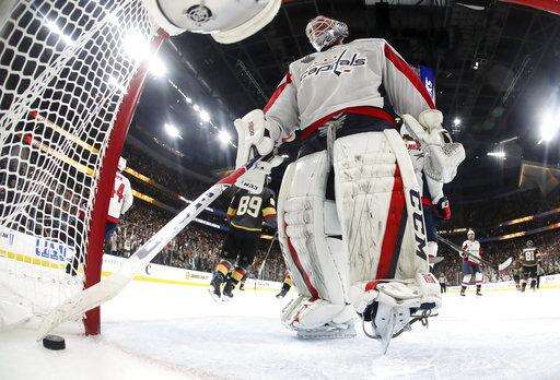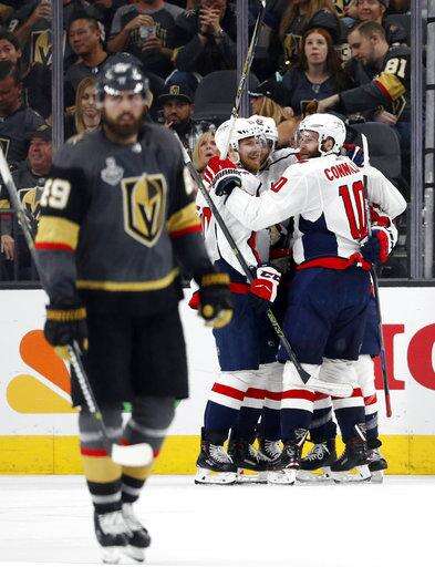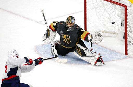 NOTES: The first two games of the Final were split for only the third time in the last 13 editions. ... The Golden Knights have scored the opening goal in the first period of all nine of their postseason home games. ... Washington needs three more wins to become the second team in NHL history to win a Cup after trailing in all four postseason rounds, joining Pittsburgh in 1991. ... T-Mobile Arena reported 18,702 fans in the sold-out building, setting a franchise record for attendance.