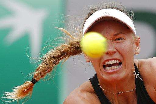 Denmark's Caroline Wozniacki returns a shot against France's Pauline Parmentier during their third round match of the French Open tennis tournament at the Roland Garros stadium in Paris, France, Friday, June 1, 2018. (AP Photo/Michel Euler) The Associated Press