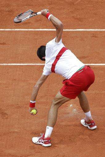 Serbia's Novak Djokovic celebrates scoring a point against Spain's Roberto Bautista Agut during their third round match of the French Open tennis tournament at the Roland Garros stadium in Paris, France, Friday, June 1, 2018. (AP Photo/Alessandra Tarantino) The Associated Press