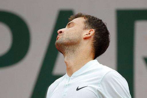 Bulgaria's Grigor Dimitrov reacts as he plays Spain's Fernando Verdasco during their third round match of the French Open tennis tournament at the Roland Garros stadium, Friday, June 1, 2018 in Paris. (AP Photo/Christophe Ena) The Associated Press