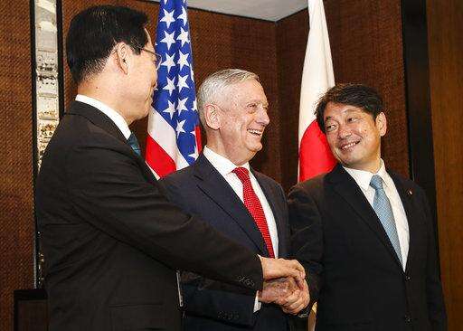 Mattis was speaking at the start of a meeting with South Korean Defense Minister Song Young-moo and Japanese Defense Minister Itsunori Onodera on the final day of the Shangri-La Dialogue security conference. He said allies must remain vigilant.