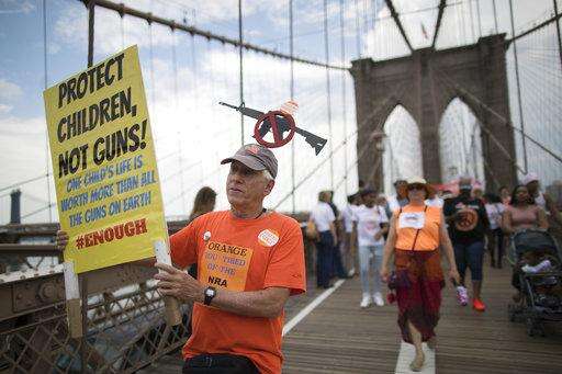 NEW YORK (AP) - Thousands of demonstrators have marched across New York's Brooklyn Bridge in a protest against gun violence.