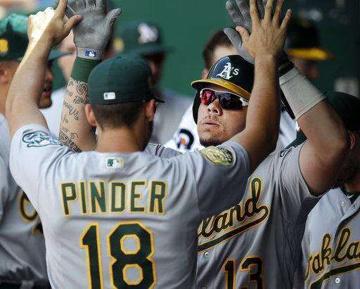 Athletics: LF Matt Joyce (lower back tightness) left in the fifth inning. ... RHP Paul Blackburn (right forearm strain) is to make a minor league rehab start Tuesday for Triple-A Nashville. He has a limit of 75 pitches.