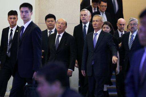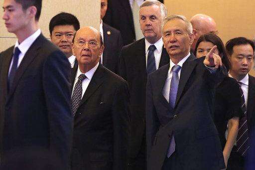 U.S. Commerce Secretary Wilbur Ross, second from left, and Chinese Vice Premier Liu He, right, arrive to attend a meeting at the Diaoyutai State Guesthouse in Beijing, Sunday, June 3, 2018. U.S. Commerce Secretary Ross is in Beijing for talks on China's promise to buy more American goods after Washington ratcheted up tensions with a new threat of tariff hikes on Chinese high-tech exports. (AP Photo/Andy Wong, Pool) The Associated Press