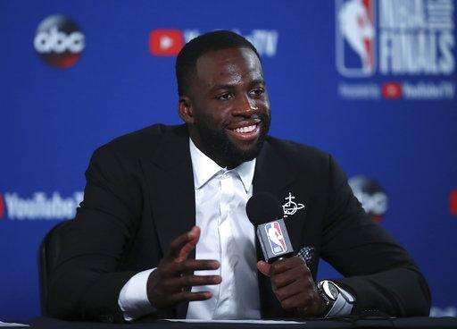 Golden State Warriors forward Draymond Green speaks at a news conference after Game 1 of basketball's NBA Finals against the Cleveland Cavaliers in Oakland, Calif., Thursday, May 31, 2018. The Warriors won 124-114 in overtime. (AP Photo/Ben Margot) The Associated Press