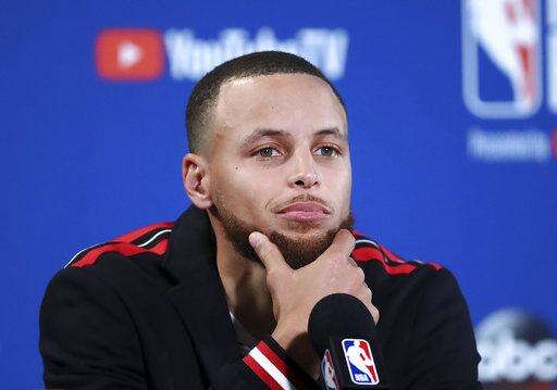 Golden State Warriors guard Stephen Curry speaks at a news conference after Game 1 of basketball's NBA Finals against the Cleveland Cavaliers in Oakland, Calif., Thursday, May 31, 2018. The Warriors won 124-114 in overtime. (AP Photo/Ben Margot) The Associated Press