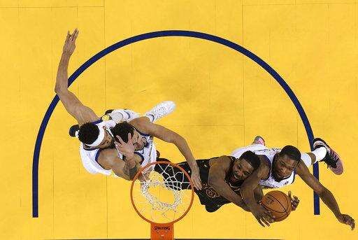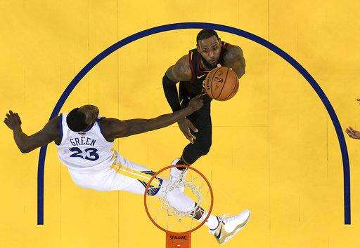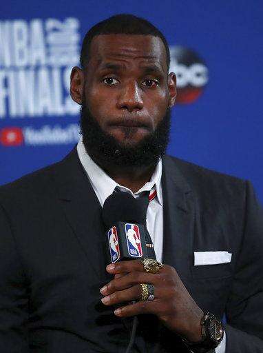 Cleveland Cavaliers forward LeBron James speaks at a news conference after Game 1 of basketball's NBA Finals against the Golden State Warriors in Oakland, Calif., Thursday, May 31, 2018. The Warriors won 124-114 in overtime. (AP Photo/Ben Margot) The Associated Press