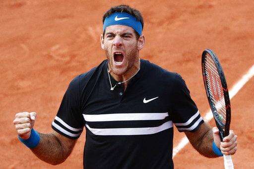 Juan Martin del Potro is into his first French Open quarterfinal since 2012, taming the big-serving John Isner 6-4, 6-4, 6-4.