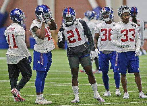 NOTES: The Giants signed undrafted tight end Garrett Dickerson of Northwestern. They also waived receiver Keeon Johnson and defensive backs Jeremiah McKinnon and Mike Jones. ... CB Janoris Jenkins intercepted Eli Manning's fade pass to the corner during a red-zone drill. ... CB Eli Apple also had an impressive breakup on a deep pass to Sterling Shepard. ... WR Odell Beckham Jr. and DT Damon Harrison were not at the voluntary practice Monday, but Shurmur says they will be at the mandatory three-day camp next week.