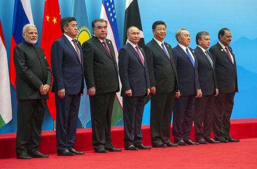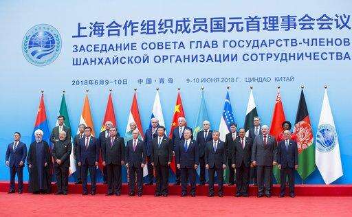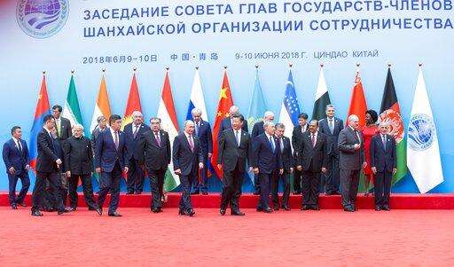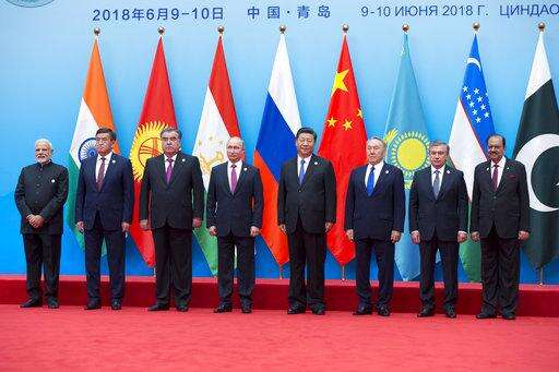 From left: Indian Prime Minister Narendra Modi, Kyrgyz President Sooronbai Jeenbekov, Tajikistan President Imomali Rakhmon, Russian President Vladimir Putin, Chinese President Xi Jinping, Kazakh President Nursultan Nazarbayev, Uzbekistan's President Shavkat Mirziyoyev and Pakistani President Mamnoon Hussain pose for a photo prior to their talks at the Shanghai Cooperation Organization (SCO) Summit in Qingdao in eastern China's Shandong Province Sunday, June 10, 2018. (Dmitry Azarov, Sputnik, Kremlin Pool Photo via AP)