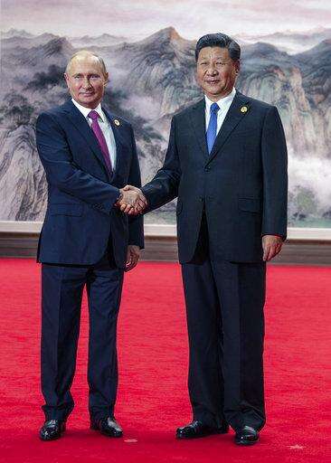Chinese President Xi Jinping, right, and Russian President Vladimir Putin pose for a photo at the Shanghai Cooperation Organization (SCO) Summit in Qingdao in eastern China's Shandong Province Sunday, June 10, 2018. (AP Photo/Alexander Zemlianichenko)